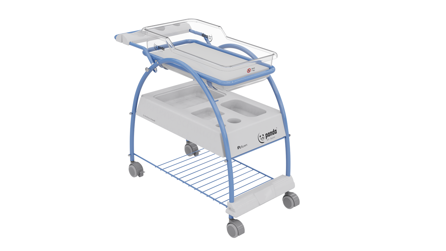 Com desenho moderno e ergonômico que atende às mais avançadas requisições para alojamento e transporte intra-hospitalar, o berço Panda® é pioneiro na tendência de humanização dos ambientes hospitalares.