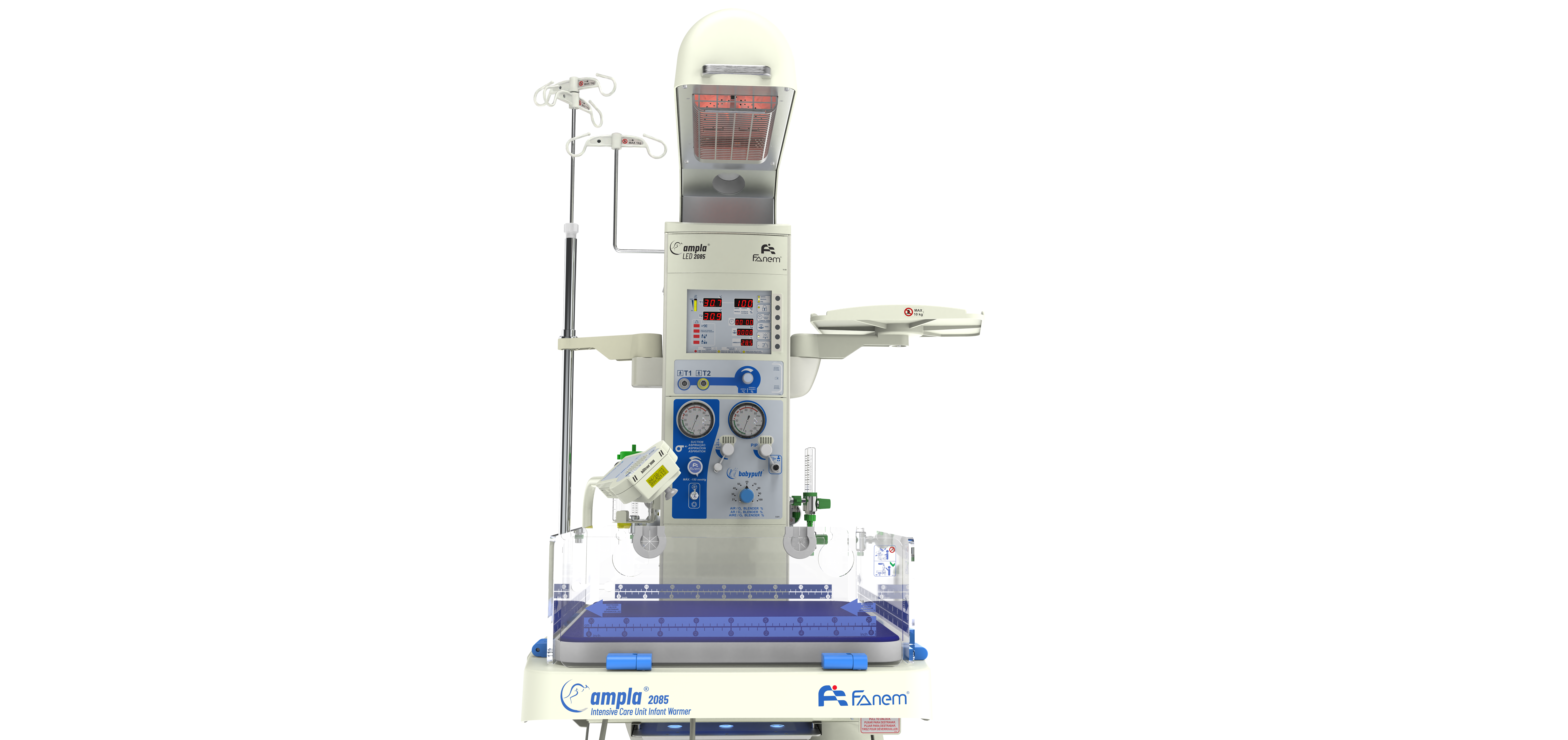 O Berço Aquecido Ampla® 2085 LED é a solução completa para salas de parto, unidades de terapia intensiva, pronto atendimento, alojamentos conjuntos ou salas cirúrgicas. Ideal para qualquer ambiente cuja necessidade seja manter o recém-nascido aquecido por calor radiado com estabilidade térmica ao mesmo tempo que diversos parâmetros são monitorados com precisão. Além disso, o equipamento permite fácil acesso para toda a equipe de profissionais, oferece segurança e ainda incorpora uma somatória de recursos técnicos até hoje nunca reunidos num único equipamento.