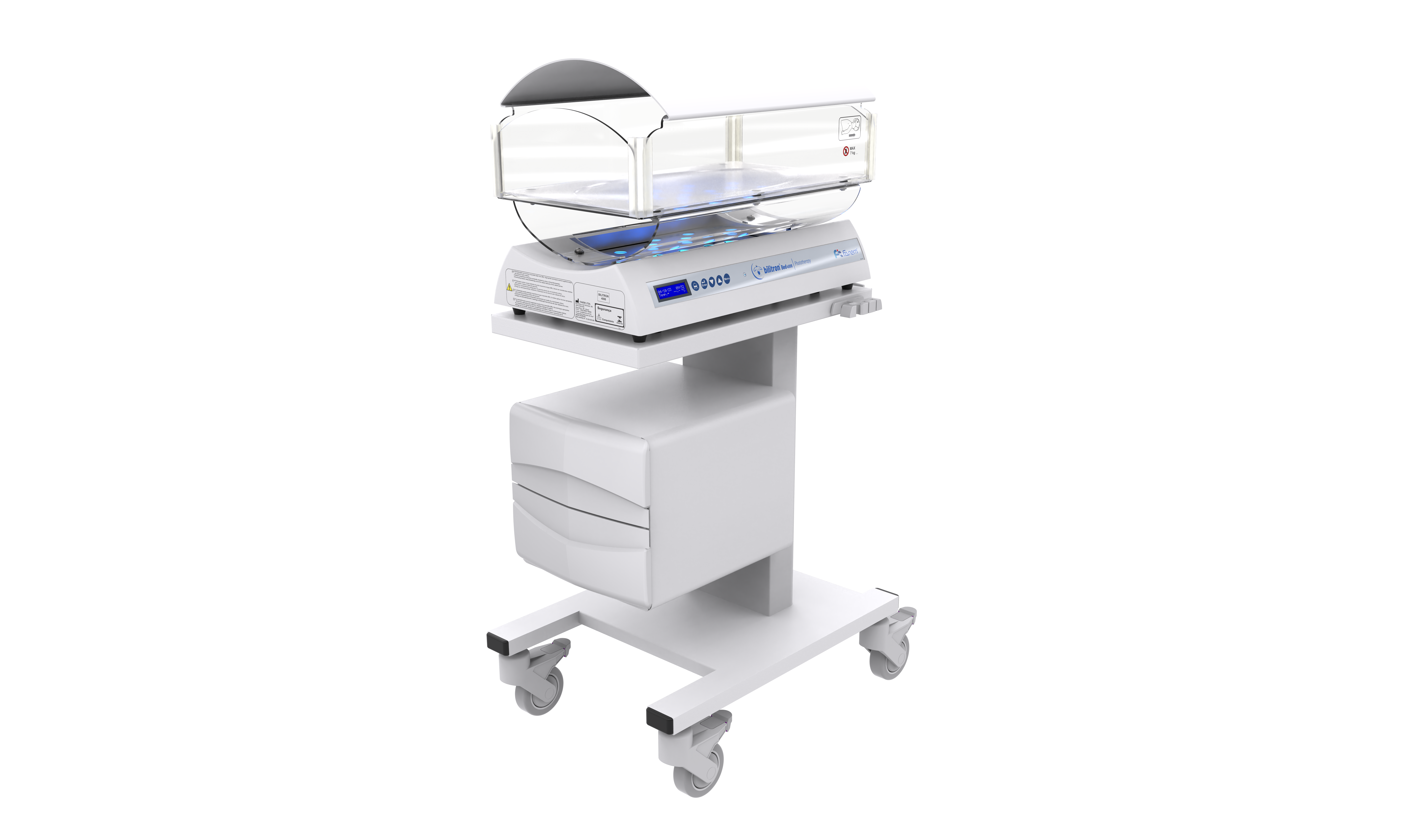 O Bilitron® Bed 4006 foi desenvolvido para atender as necessidades de fototerapia para o tratamento da hiperbilirrubinemia (icterícia) no RN a termo ou pré-termo com eficácia e segurança. Microprocessado, possui ajuste da irradiância aplicada, monitora o tempo de tratamento e a vida útil da fonte emissora de luz.
