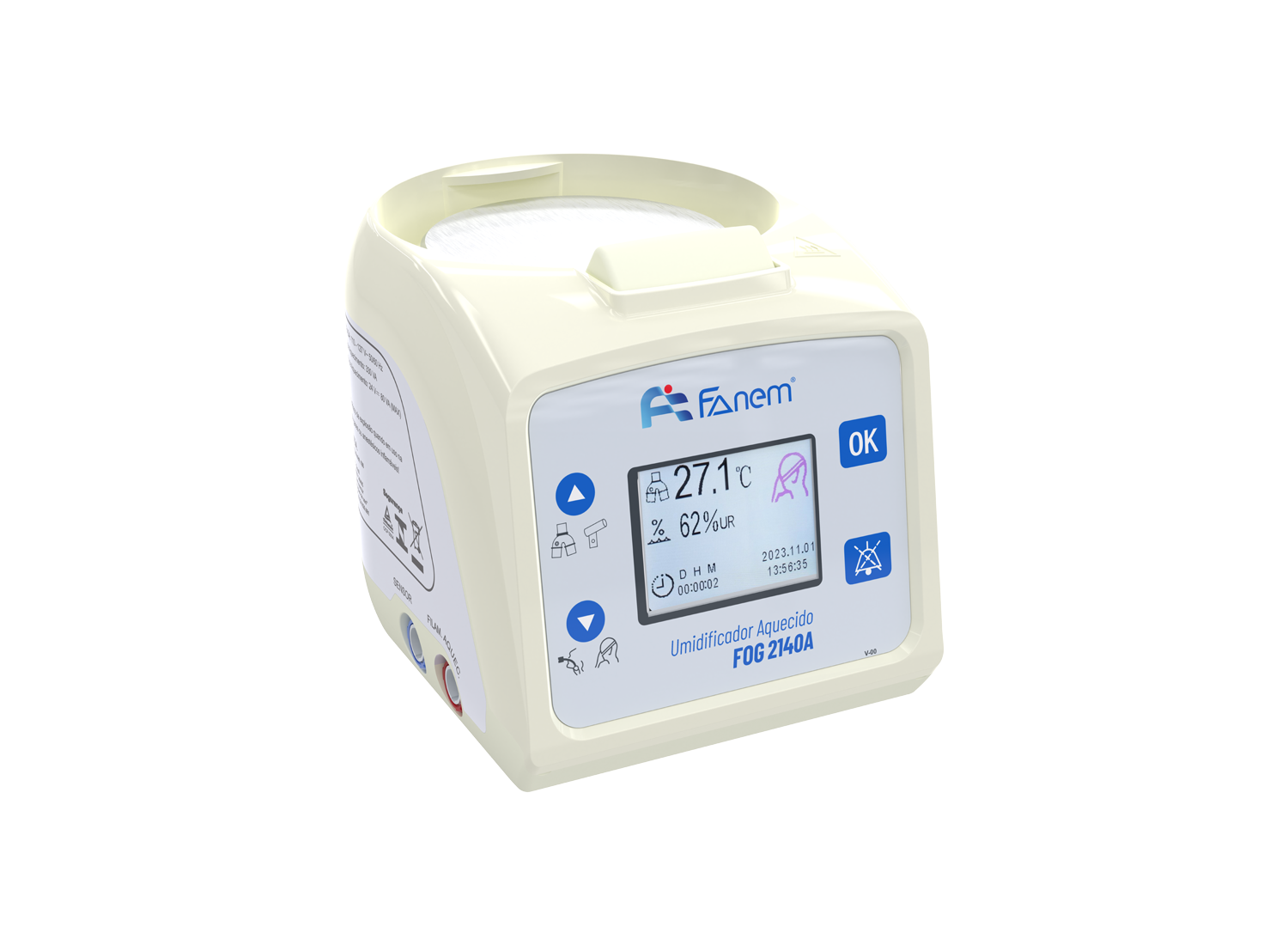 O Umidificador modelo FOG 2140A, possui tela colorida de LCD, com indicações das temperaturas, controles microprocessados, Servo Controle de ajuste da temperatura entregue ao paciente e permite o uso de circuito aquecido, otimizando a temperatura entregue ao paciente. Assim, ele diminui a condensação de água e pode ser utilizado para a prática da terapia de alto fluxo. Seu uso pode ser junto com um ventilador mecânico, CPAP de bolhas, associado a terapia de Alto Fluxo ou, até mesmo com um reanimador, para os pacientes neonatais, pediátricos e adultos.